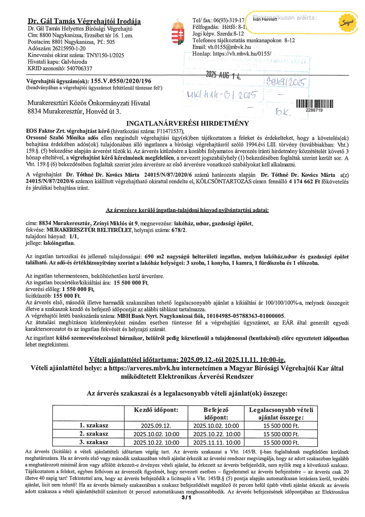 Ingatlanárverési hirdetmény – F11471537