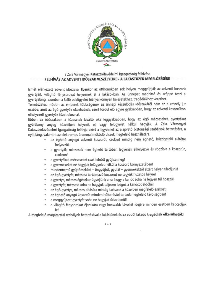 Felhívás az adventi időszak veszélyeire