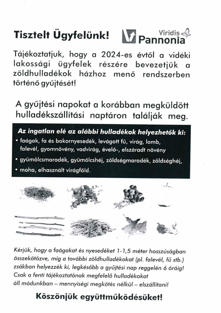 Hirdetmény a zöldhulladékok gyűjtéséről