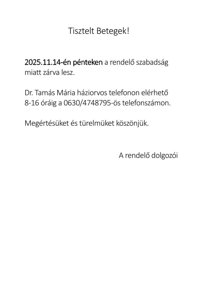 Hirdetmény háziorvosi szabadságról