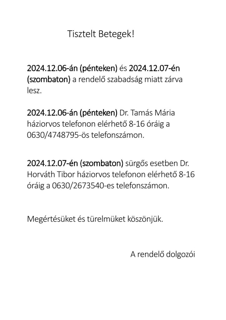 Hirdetmény háziorvosi szabadságról