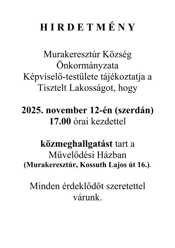 Hirdetmény közmeghallgatásról