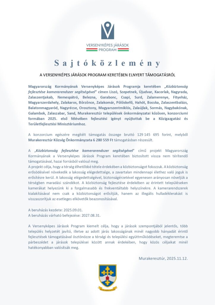 Versenyképes Járások Program – Közbiztonság fejlesztése kamerarendszer segítségével