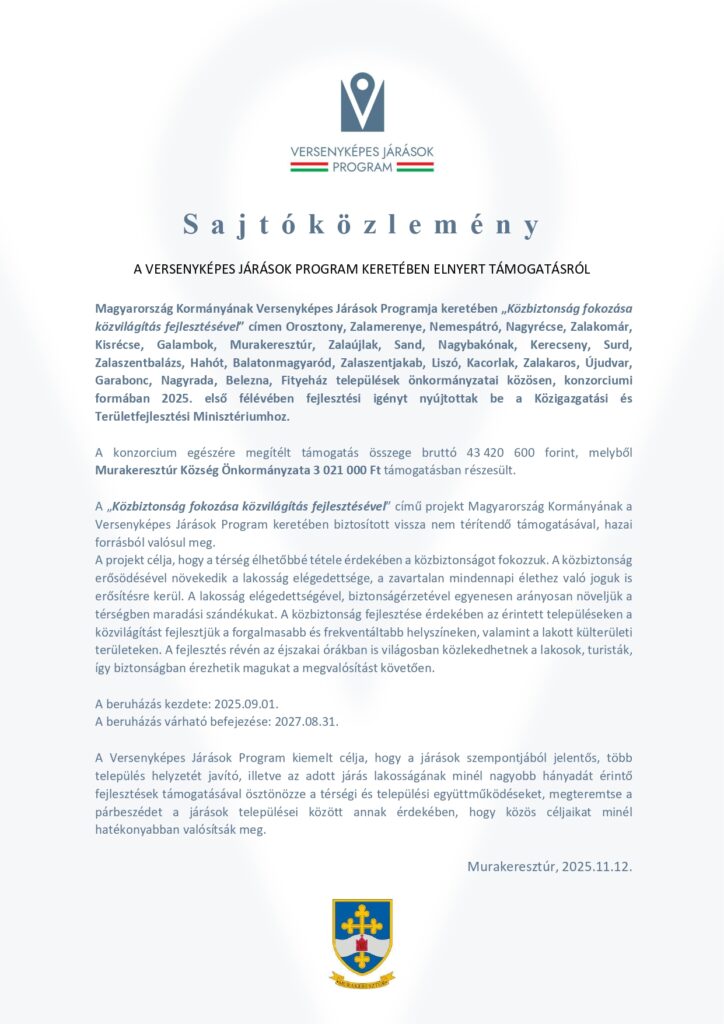 Versenyképes Járások Program – Közbiztonság fokozása közvilágítás fejlesztésével