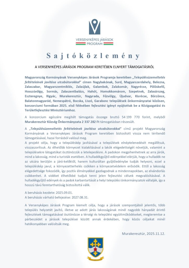 Versenyképes Járások Program – Településüzemeltetés feltételeinek javítása utcabútorokkal